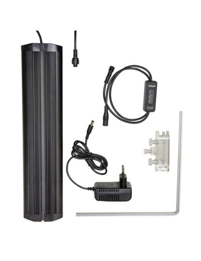 La lampe à LED Nano Lux est l'éclairage idéal pour le Dupla Cube 80 ou pour tout aquarium d'eau douce de taille comparable. L'éclairage mixte équilibré assure non seulement de splendides couleurs brillantes des animaux mais il favorise également une croissance saine et robuste des plantes. La température de couleur (5.100 Kelvin) et le spectre déterminé soutient dans ce cadre la photosynthèse des plantes. Le variateur joint permet d'adapter les lampes à LED aux besoins individuels de l'aquarium. En outre, le variateur permet d'activer un clair de lune bleu pour représenter une transition lumineuse proche de la nature. Vous pouvez ainsi également observer les habitants des aquaria de nuit. La gestion optimale de la chaleur garantit une durée de vie extrêmement longue des LED allant jusqu'à 50.000 heures de fonctionnement.