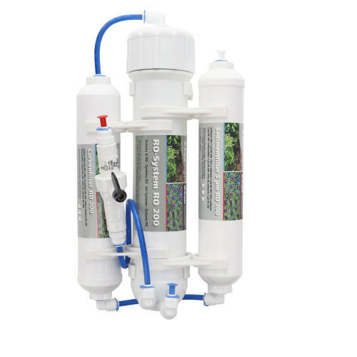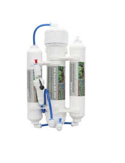 Les osmoseurs inverses permettent d'obtenir une eau de robinet optimale pour les aquariums d'eau de mer et d'eau douce. De nombreux problèmes d'eau sont réglés en utilisant de l'eau ayant été traitée par un osmoseur inverse. Les osmoseurs inverses (Reverse Osmosis) travaillent selon le principe du filtrage physique. Contrairement par ex. aux échangeurs d'ions, qui remplacent les ions contribuant à la dureté (par ex. le calcium) contre d'autres n'y contribuant pas (par ex. le sodium), les substances nocives (par ex. silicate, nitrate) et les agents de dureté sont physiquement éliminés de l'eau. Dans l'osmoseur inverse, l'eau coule à travers les conduites d'eau domestiques usuelles à la pression présente de 2 à 6 bar max. à travers une membrane semi-perméable. Ainsi, les substances dissoutes dans l'eau (substances nocives, sels ou agents de dureté) ne peuvent pas franchir les petites mailles de la membrane et demeurent dans l'eau résiduelle. Cette eau résiduelle est dérivée comme concentré et elle peut être utilisée sans hésitation comme eau de nettoyage, eau d'arrosage ou eau de service. Les osmoseurs inverses Dupla ont un taux de rétention d'un maximum de 95 à 98 % de toutes les substances nocives présentes dans l'eau du robinet.