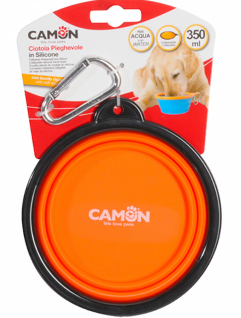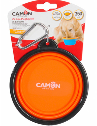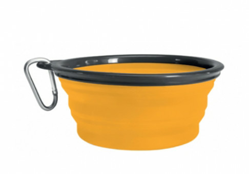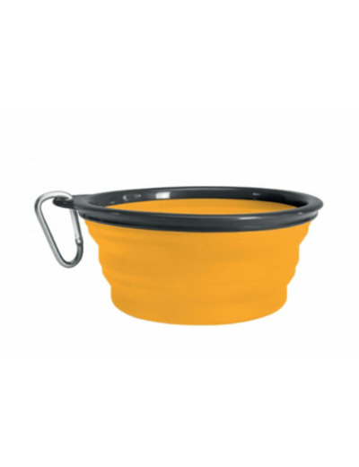 Gamelle entièrement pliable, en silicone très souple avec bord rigide.