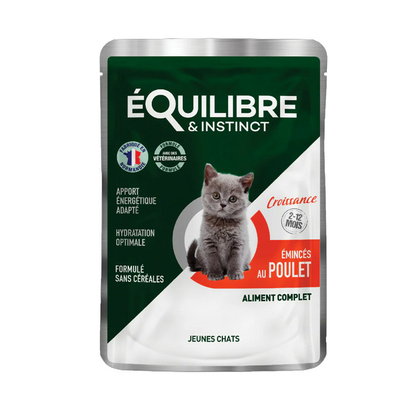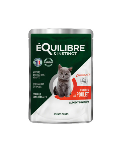 Nos émincés au poulet pour chaton sont un aliment complet, riche en énergie et en protéines. Pour lui assurer une bonne croissance, cet aliment est doté d'un complexe vitaminique équilibré, et apportera les nutriments essentiels pour le protéger et renforcer son système immunitaire. En plus, l'arôme riche de ces bouchées en sauce viendra enthousiasmer l'odorat et le goût de votre jeune chat.