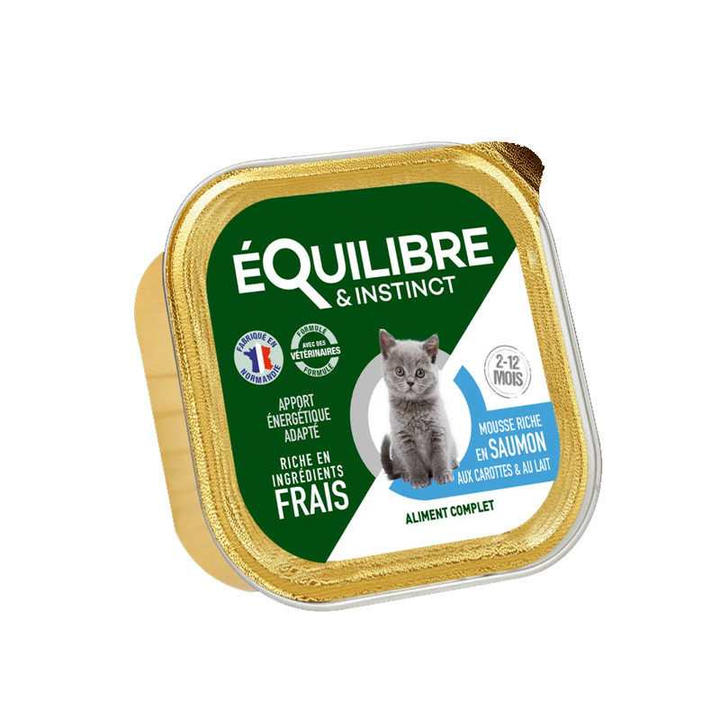 Nos mousses riches en saumon offrent un apport énergétique adapté aux besoins d’un chaton. La texture mousse facilite l’ingestion de la nourriture par le chaton. Cette recette contribue au bon développement psychomoteur du chaton grâce aux acides gras essentiels contenus dans le saumon.