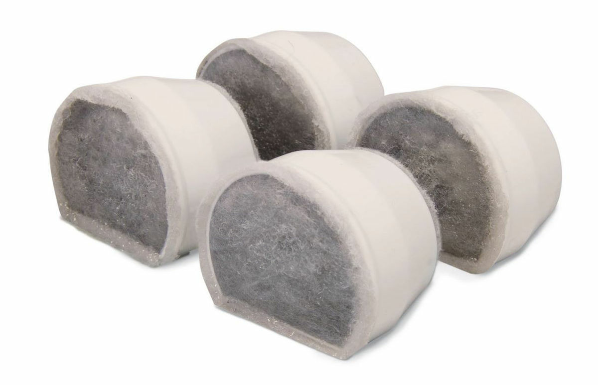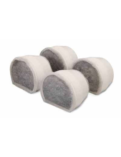 Chaque filtre est doté d'un coussinet en polyester à double densité pour retenir les poils et les débris. Le charbon, quant à lui, élimine le mauvais goût et les mauvaises odeurs de l'eau, ce qui la rend plus attirante. Les filtres permettent d'allonger la durée de vie de votre fontaine et de votre pompe. Ils doivent être remplacés toutes les 2 à 4 semaines.