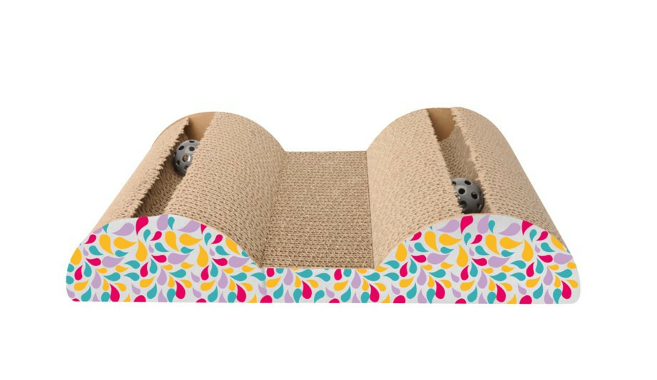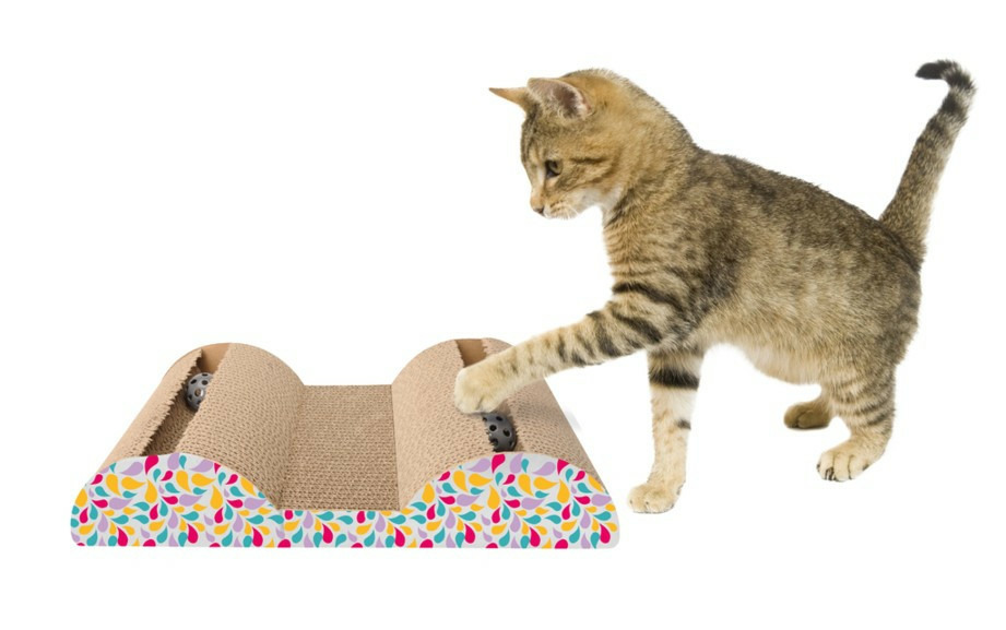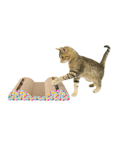 Ce griffoir en carton est une solution idéale pour satisfaire le besoin de votre chat/chaton. Encore plus attractif par la présence de 2 balles sonores.