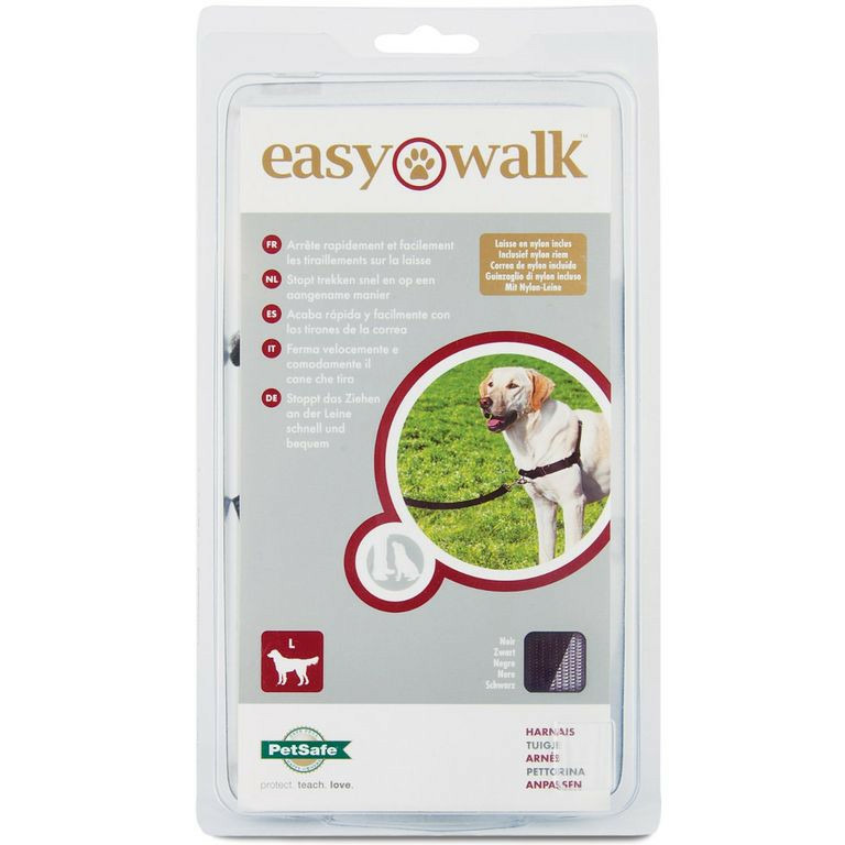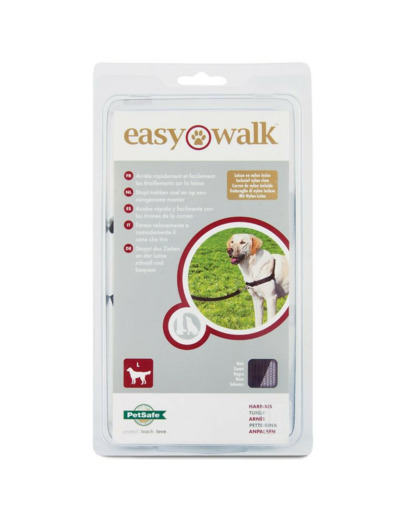 Le harnais Easy Walk® est conçu pour décourager en douceur les chiens de tirer sur leur laisse lors de la promenade. Contrairement aux colliers et harnais traditionnels, le harnais Easy Walk® de PetSafe® ne provoque ni toux, ni étouffement, ni étranglement car la lanière de la poitrine repose contre le sternum. La fixation exclusive de la laisse à l’avant de la poitrine empêche toute traction en dirigeant le chien vers le côté en détournant son attention vers son maître. Les boucles à fermeture rapide facilitent l’enfilage et le retrait du harnais et les 4 points de réglage offrent au chien un confort optimal.
