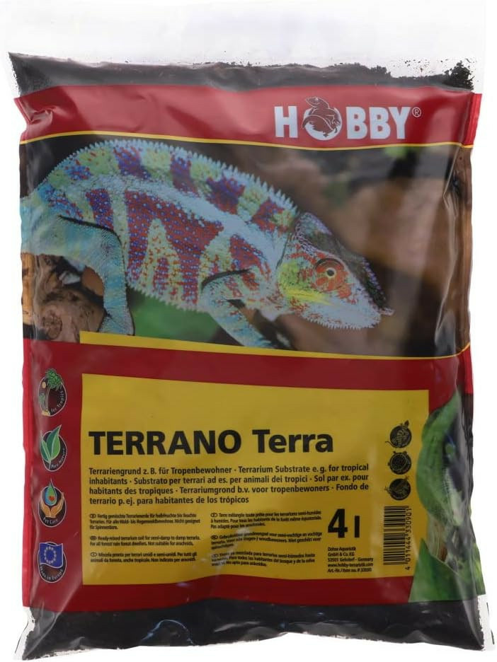 Une terre mélangée toute prête pour les terrariums semi-humides à humides. Substrat absorbant, conservant l'humidité, qui se condense légèrement avec le temps. Pour tous les habitants de la forêt même équatoriale. Apprécié par les espèces qui creusent. Par exemple pour Anolis sp., Takydromus sp., Mantella sp. et Pandinus sp..