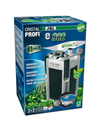 • Marche ultra silencieuse pour un débit de 900 l/h. Préfiltration brevetée avec surface 100 % supérieure au modèle 901. Grande capacité de filtration biologique, vol. 7,6 l, arrêt d'eau, raccords tuyaux rotatifs à 360°, masses filtrantes faciles à remplacer.