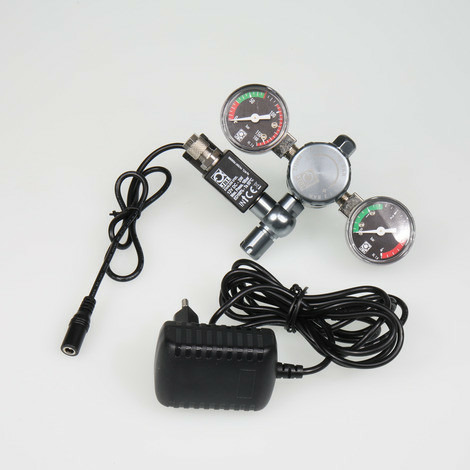 • Montage facile : visser le détendeur avec électrovanne montée sur la bouteille, raccorder le tuyau au compte-bulles/clapet antiretour et au réacteur. Brancher l’électrovanne sur la minuterie (non fournie), paramétrer le nombre de bulles – terminé.