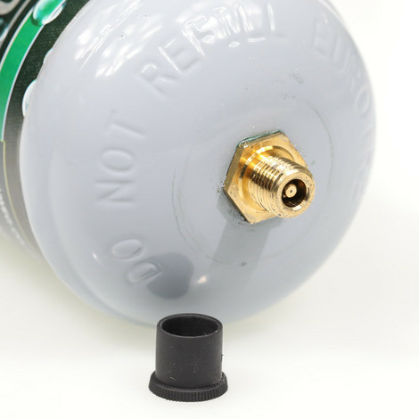 • Bouteille de 500 g de CO2 en acier à usage unique, recyclable, contrôlée TÜV (filetage M10x1). Le CO2 se liquidifiant sous pression, les bouteilles de CO2 doivent fonctionner en position verticale.