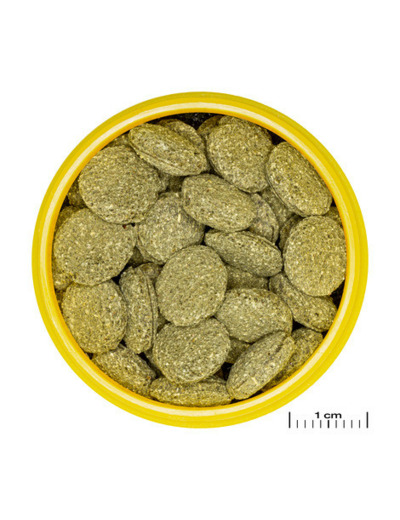 Composition : germes de blé, épinard, farine de soja, fibres de bois, farine de saumon, farine d'herbes, spiruline, farine de crevettes, farine de blé, farine de riz, extrait de levure, pulpe de betterave.