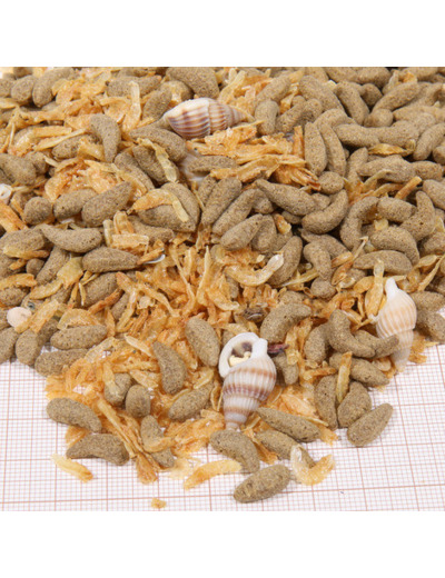 • Escargots entiers à l’état naturel séchés (avec coquille env. 2 cm), insectes aquatiques, moules, bâtonnets au poisson (env. 1,5 cm) et crevettes, idéale diversification dans la nourriture de toutes les espèces de tortues d’eau et des marais.