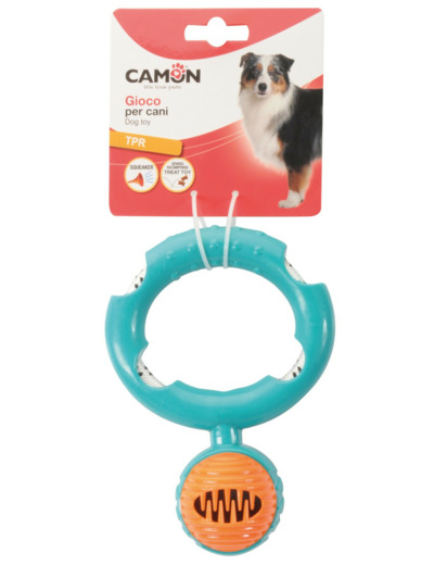 Jouet amusant pour chiens avec poignée en TPR et cordelette intérieure.