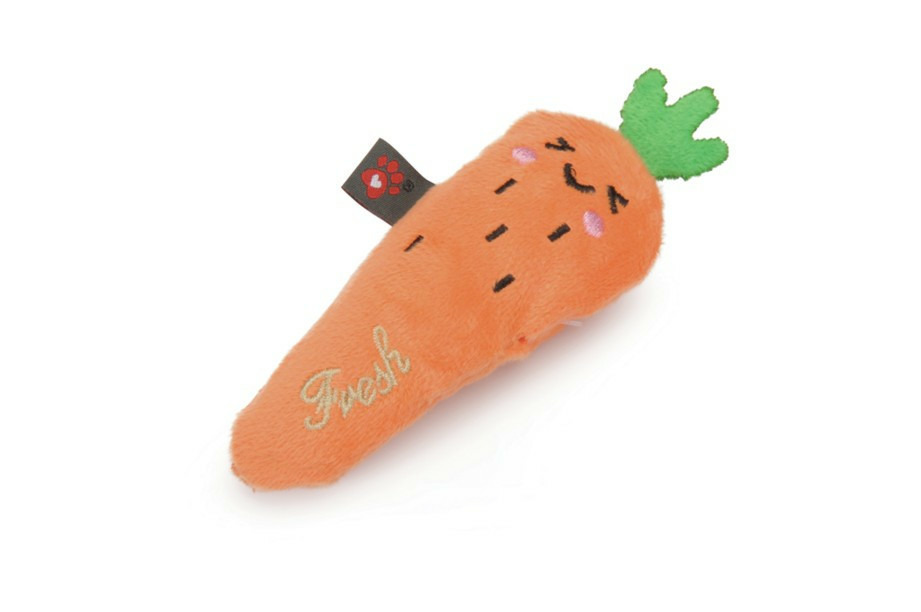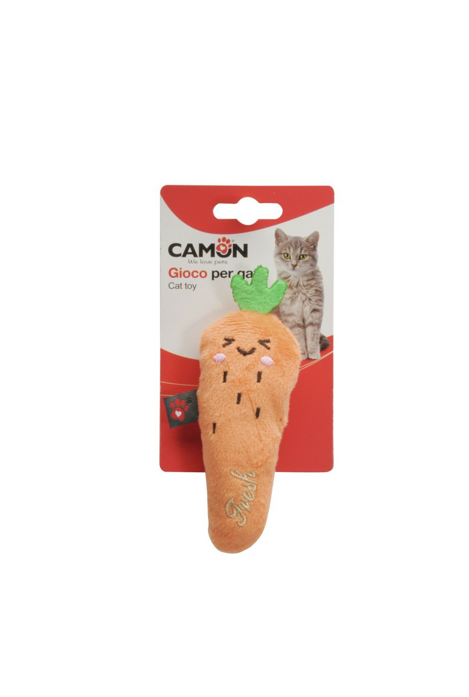 Un adorable jouet pour chat en forme de carotte, fabriqué en polyester.
