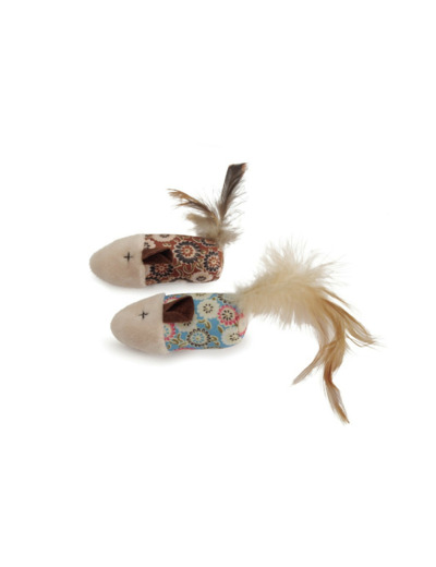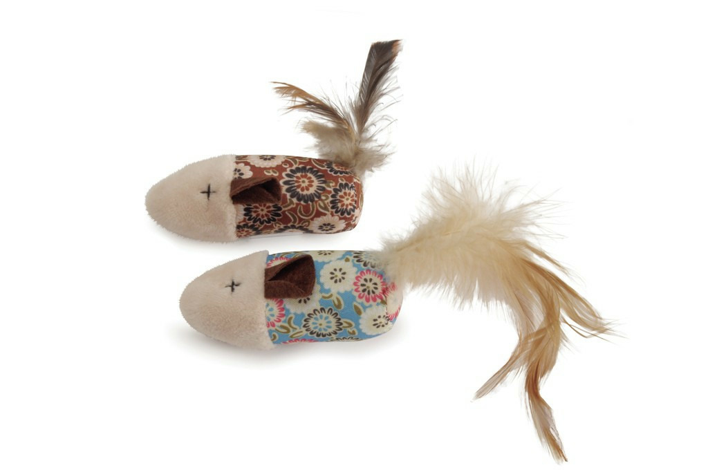 Jouet amusant pour chat en forme de souris fleurie à plumes.