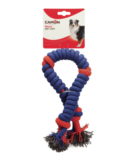 Un jouet amusant pour chien sous forme de double corde résistante en polyester et coton.