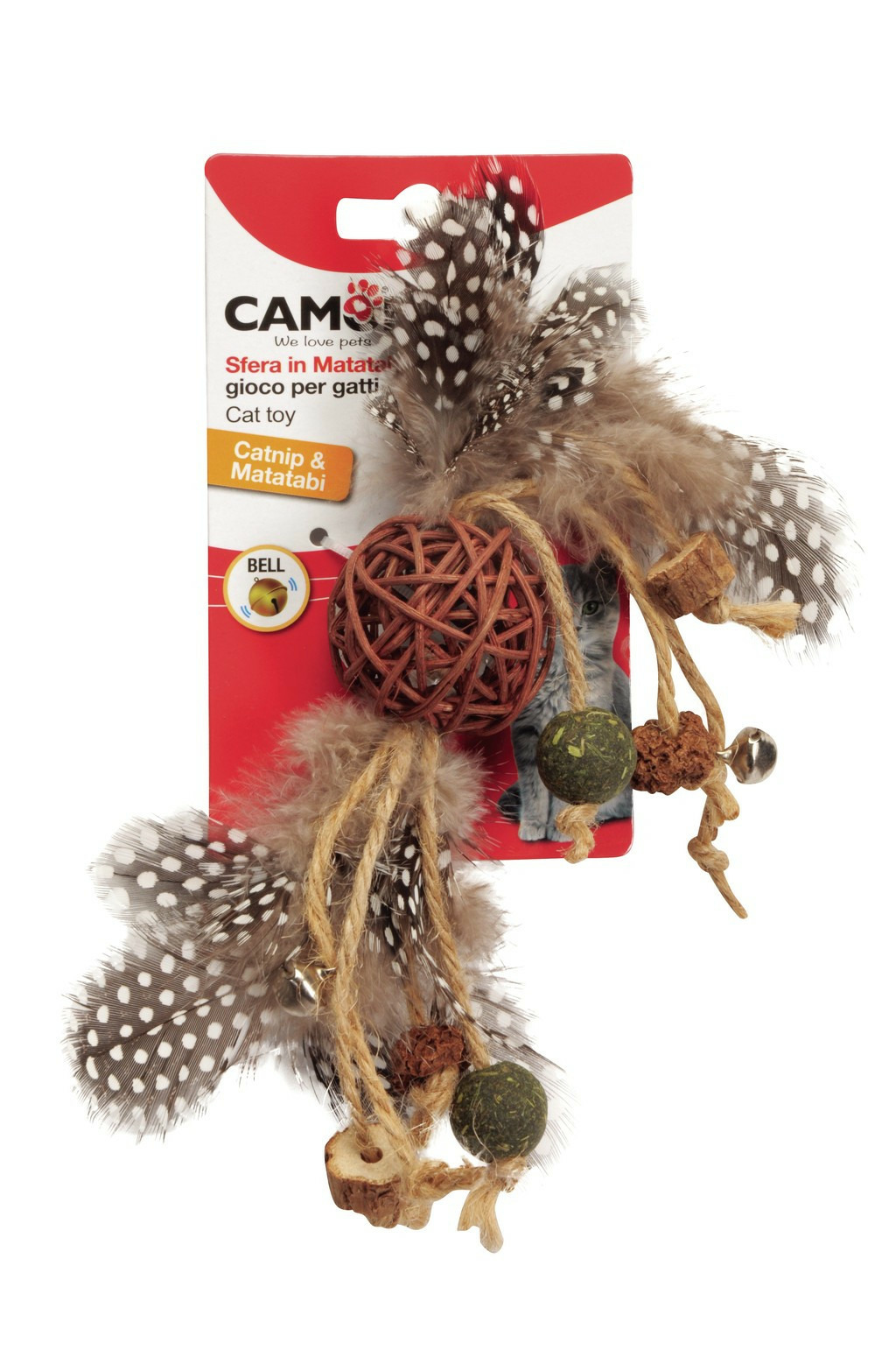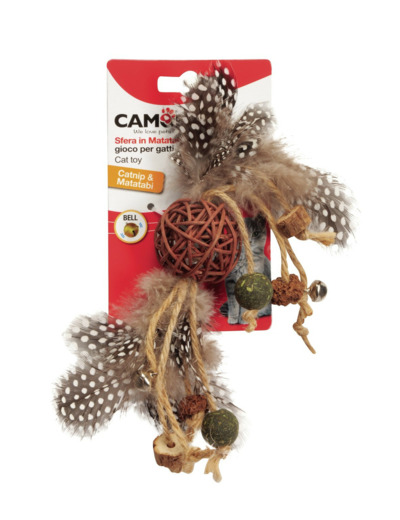 Ce jouet en matatabi pour chat contient de nombreux éléments attrayants pour les félins : du matatabi (aussi appelé vigne argentée). Une plante qui suscite une attirance particulière chez les chats, stimulant leur envie de jouer et de ronger, contribuant ainsi à leur détente, ainsi qu'une corde de jute, de l'herbe à chat et une clochette pour prolonger le plaisir de votre animal.