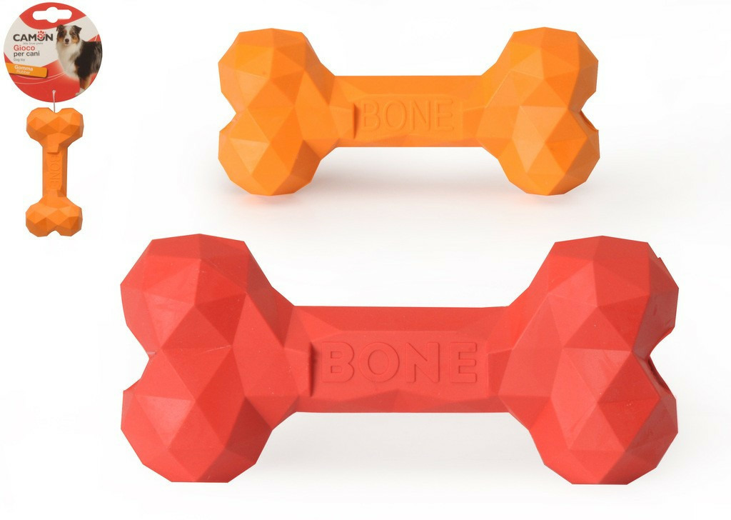 Un jouet pour chien amusant et coloré en forme d'os géométrique.