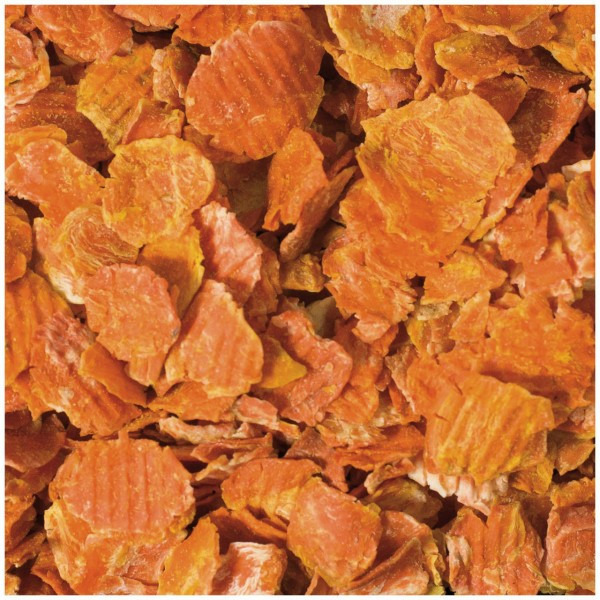 Délicatement séchés et cuits à la vapeur, les flocons de carottes conservent une grande partie de leurs vitamines naturelles. Un en-cas particulièrement doux pour l'estomac.