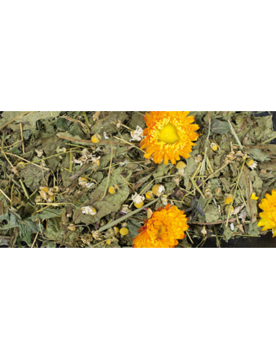 Composition : Pissenlit (87%), camomille (5%), menthe poivrée, hélichryse (3%)
