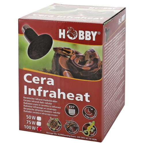 Nos Cera Infraheat sont fabriqués en céramique de haute qualité et garantissent une source de chaleur sûre et stable pour les protégés. De plus, les radiateurs sont insensibles aux éclaboussures d'eau. Ils conviennent donc très bien, par exemple, pour fournir de la chaleur aux tortues aquatiques. Cera Infraheat a une durée de vie impressionnante de 10.000 heures, ce qui signifie que vous n'aurez pas à vous soucier du remplacement pendant longtemps.