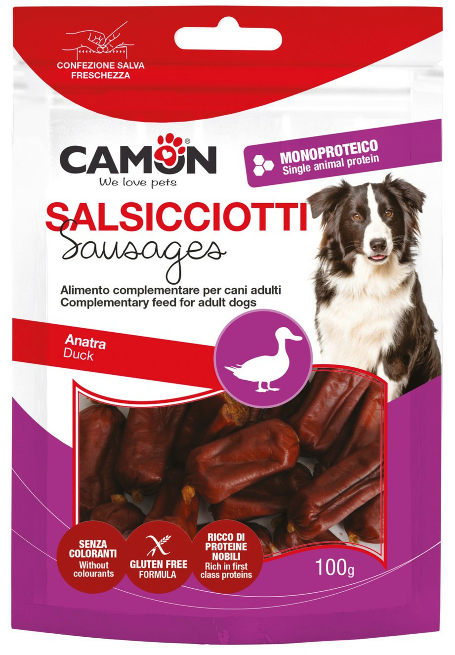 Délicieuses friandises pour chiens sous forme de mini-saucisses de canard.