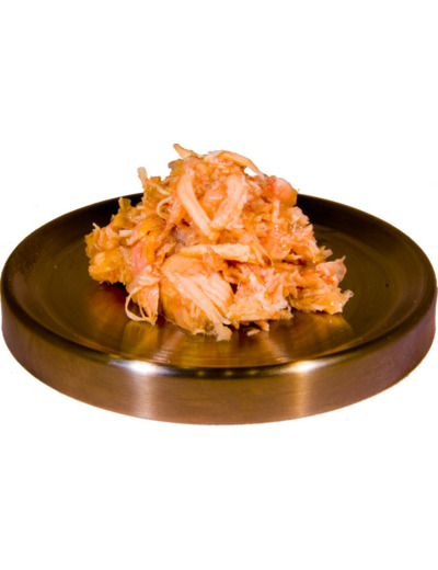 Ingrédients : 60% de viande/poissons (28.13% de thon, 28.13% de poulet, 3.75% de crevettes), 39% d'eau de cuisson, 0.88% de poudre de gelée, 0.12% d'oligosaccharides.