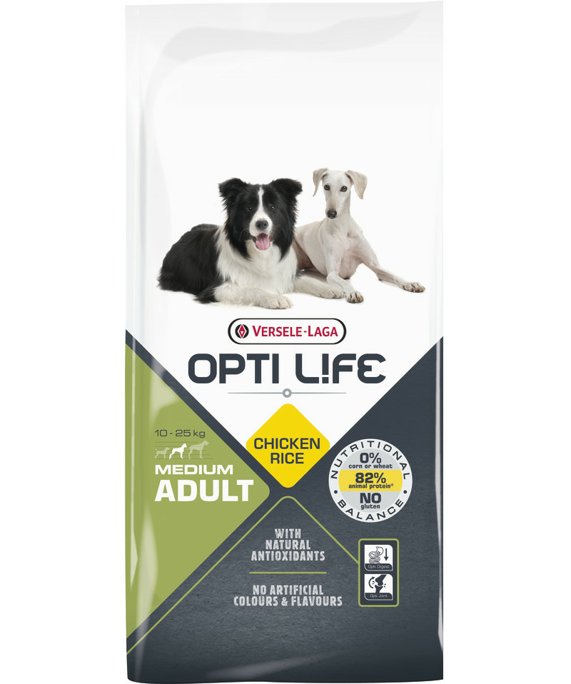 Opti Life Adult Medium est une formule parfaitement équilibrée pour les races moyennes (10kg à 25kg) à base de poulet et de riz, spécialement développée pour que votre chien acquière et conserve une condition physique optimale.