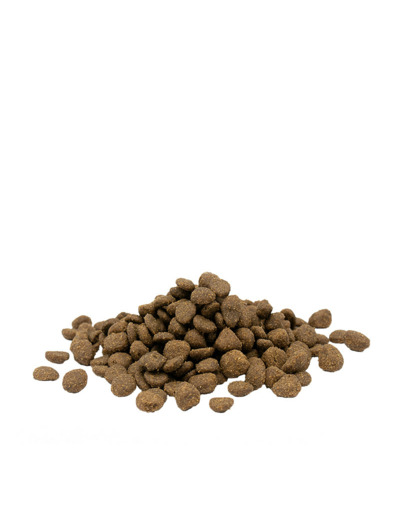 Composition : saumon (déshydraté 41%), pomme de terre, pois, graisses animales, fibres végétales (cellulose 2,5%, pulpe de betterave 1%), graines de lin (3%), levure de bière, œufs entiers séchés, protéines animales hydrolysées, huile de saumon (1%), substances minérales, FOS (0,3%), MOS (0,1%), algues marines (Ascophyllum nodosum), yucca (250 mg/kg), romarin (14 mg/kg), thé vert (10 mg/kg)