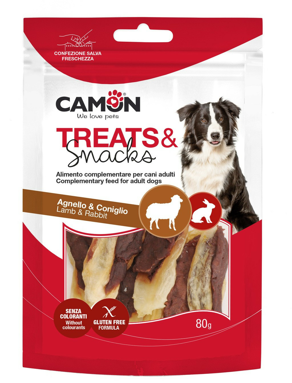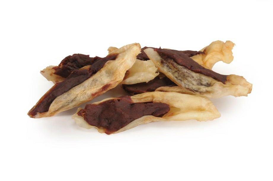 Composition : Viande d'agneau 77%, oreille de lapin séchée 15%, fécule de pomme de terre, glycérine (végétale), cacahuètes, sorbitol, protéines de pois, concentré protéique (graines de soja), chlorure de sodium.