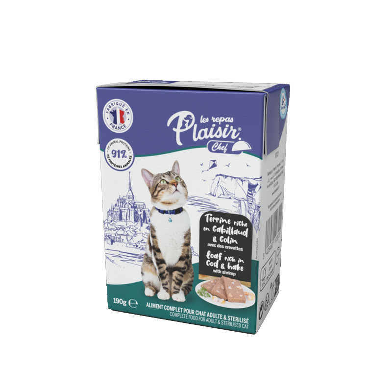 Une recette exclusive "façon bouillabaisse" avec 16% de cabillaud, 16% de colin et 4% de crevettes. Votre gourmand à 4 pattes peut passer à table.