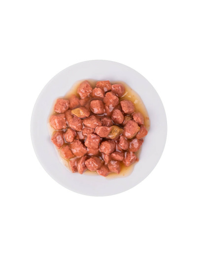 Composition : Viandes et sous-produits animaux 43% (dont poulet 4%), Sous-produits d'origine végétale, Huiles et graisses, Substances minérales, Extraits de protéines végétales, Sucres.