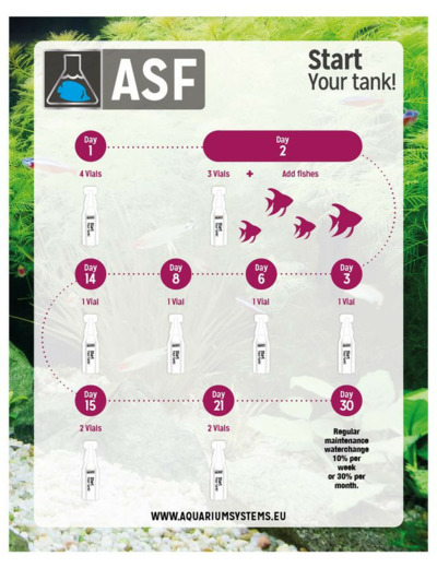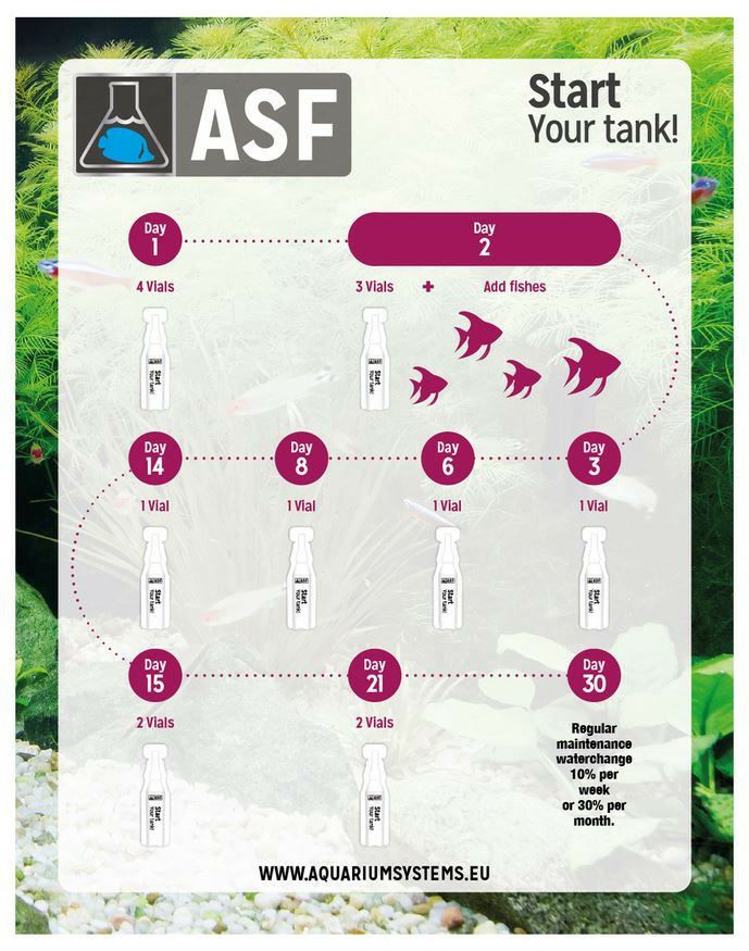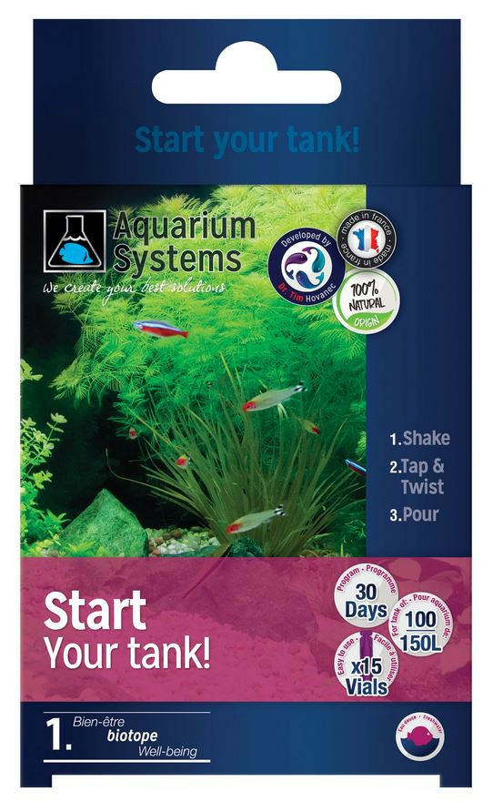Mettre en place un nouvel aquarium peut être intimidant et passionnant en même temps. Alors que l'excitation est bonne, se sentir intimidé n'est pas une sensation agréable. Enlever l'appréhension lors du processus d’installation et vous aider à réussir dans la mise en place de votre aquarium est l'objectif de notre programme Start Up Your Tank. Le facteur clé de succès est l’équilibre biologique de l’aquarium.Le programme de Start Up Your Tank est conçu pour équilibrer le milieu tout en profitant de vos poissons au bout de 2 jours. Ce programme de 30 jours vous guidera à travers les étapes de l'équilibre biologique de votre aquarium. Le jour où vous commencerez le programme sera le jour d’utilisation de la première ampoule (Day 1), puis vous serez guidé par les ampoules pour obtenir d'excellents résultats.Une fois votre aquarium installé, nous vous conseillons fortement d'utiliser notre programme Maintenance, qui se traduira par un aquarium équilibré, sans algues et donc plein de plaisir.