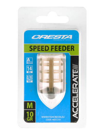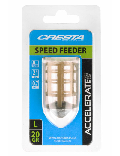 Les cages Accelerate Speedfeeders sont ré.alisé.es en plastique. Grâ.ce à. leur faible densité., leur centre de gravité. est encore mieux positionné. que les cages feeder en mé.tal. Le plastique pré.serve la forme ce qui permet d&rsquo.optimiser leur forme aé.rodynamique. La largeur des mailles de la cage en plastique est agrandie en bas ce qui permet facilement à. l&rsquo.amorce de pouvoir se dé.liter et se libé.rer facilement du feeder. La partie supé.rieure offre une meilleure adhé.rence afin que l&rsquo.appâ.t puisse ê.tre fermement compressé. afin que celui-ci se dé.lite seulement une fois qu&rsquo.il se trouve au fond de l&rsquo.eau. Les Accelerate Speedfeeder sont é.quipé.s d&rsquo.une boucle qui permet de les relier facilement. Cela offre une grande liberté. de mouvement au feeder, ce qui lui permet d&rsquo.avoir un é.quilibre parfait lors du lancer et d&rsquo.avoir un maximum de vitesse lors du lancer.