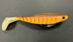 Son corps trapu est fendu pour accueillir un gros texan dé.veloppé. spé.cifiquement pour ce leurre sous lequel se trouve un plomb assez lé.ger qui lui sert de quille, comme un voilier.