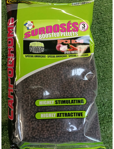 Ces .Pellets d&rsquo.amorç.age .haut de gamme sont gavé.s d&rsquo.attractants hydrosolubles riches en acides aminé.s, d'ou leur appelation de Surdosé.s. Trè.s denses, ils coulent immé.diatement au fond (vous ne connaî.trez plus la mé.saventure de voir vos pellets remonter à. la surface !!!). Grâ.ce à. leur formulation hautement digeste, ils peuvent ê.tre utilisé.s sans risque de gaver les poissons, mê.me en cas d&rsquo.amorç.age massif.