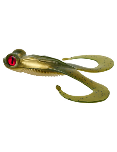 La BULL FROG s&rsquo.est imposé.e comme une ré.fé.rence pour les pê.ches de brochets sur les bordures et autres plateaux d&rsquo.herbiers, notamment au printemps quand les poissons se focalisent sur les grenouilles et autres crapauds. Pour les pê.cheurs de specimen, nous avons dé.veloppé. une taille de dix-septs centimè.tres, queue plié.e ! La Mama Bull frog offre une vraie belle bouché.e capable de nager à. toutes les vitesses. L&rsquo.é.paisseur de la base des pattes a é.té. augmenté. pour accentuer le signal vibratoire et renforcer l&rsquo.effet planant du leurre. Un vrais plus pour effectuer de longues pauses tout en conservant un leurre mobile, particuliè.rement attrayant pour un gros poisson suiveur. L&rsquo.important volume d&rsquo.eau dé.placé. par son corps massif, combiné. aux vibrations gé.né.ré.es par la queue «. double grub »., ainsi que les changements permanents de volume du leurre grâ.ce à. la mobilité. de ses pattes lui confè.rent un pouvoir de sé.duction incroyable. La MAMA BULL FROG pousse beaucoup d&rsquo.eau , se dé.tache distinctement dans la couche d&rsquo.eau et offre pour les pê.ches de plein eau le signal d&rsquo.une proie qui en vaut le dé.tour ! Ce sont ces dé.tails qui, souvent, font la diffé.rence pour dé.clencher la touche de poisson trophé.e, particuliè.rement regardant avant de se saisir d&rsquo.une proie. Arô.me Anis.
