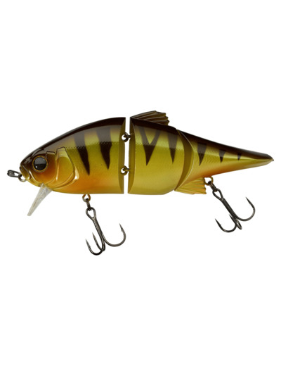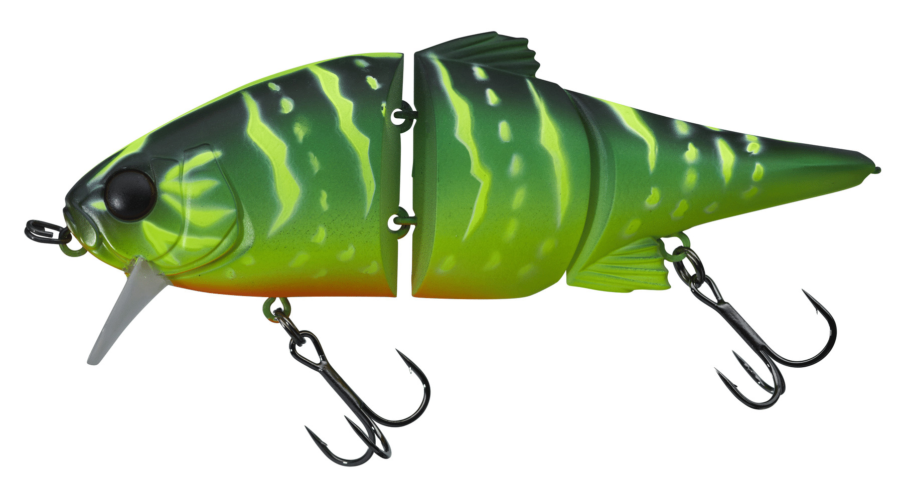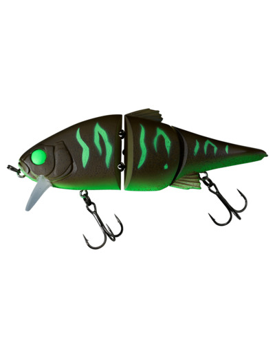 le SWING MIKEY 115 est un 'hard swimbait' de taille moyenne articulé. en trois segments doté. d'une petite bavette pour le faire é.voluer dans peu d'eau proche de la surface. Sa silhouette mimé.tise à. la perfection tous types de poissons fourrage (gardon, rotengle, brè.me, carpeau,...) autant qu'un petit carnassier (perche, black-bass, perche soleil). Sa nage de type drapeau associant 'wobbling' et 'rolling' lui confè.re un comportement fré.né.tique et irresistible, quel que soit la vitesse de ré.cupé.ration (ré.cupé.ration lente de type 'wake bait', 'stop &. go' en surface, liné.aire plus ou moins rapide). Son train arriè.re applati permet d'atté.nuer l'effet 'rolling' donnant au SWING MIKEY 115 une attitude la plus naturelle possible. De plus, on retrouve sur cette partie arriè.re un oeillet permettant d'y ajouter un teaser (une petite palette ou une plume) pour rendre ce 'swimbait' toujours plus attractif. Pourvu d'une sonorité. grave allié.e au cliquetis engendré. par le mouvement de ses articulations, le SWING MIKEY 115 est le leurre idé.al pour les pê.ches 'Medium Heavy' du brochet, de la perche et du black-bass