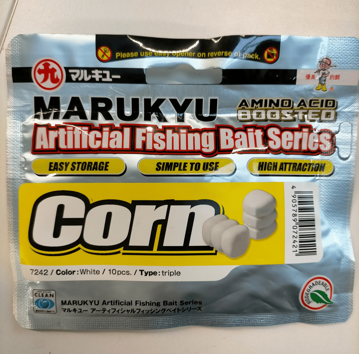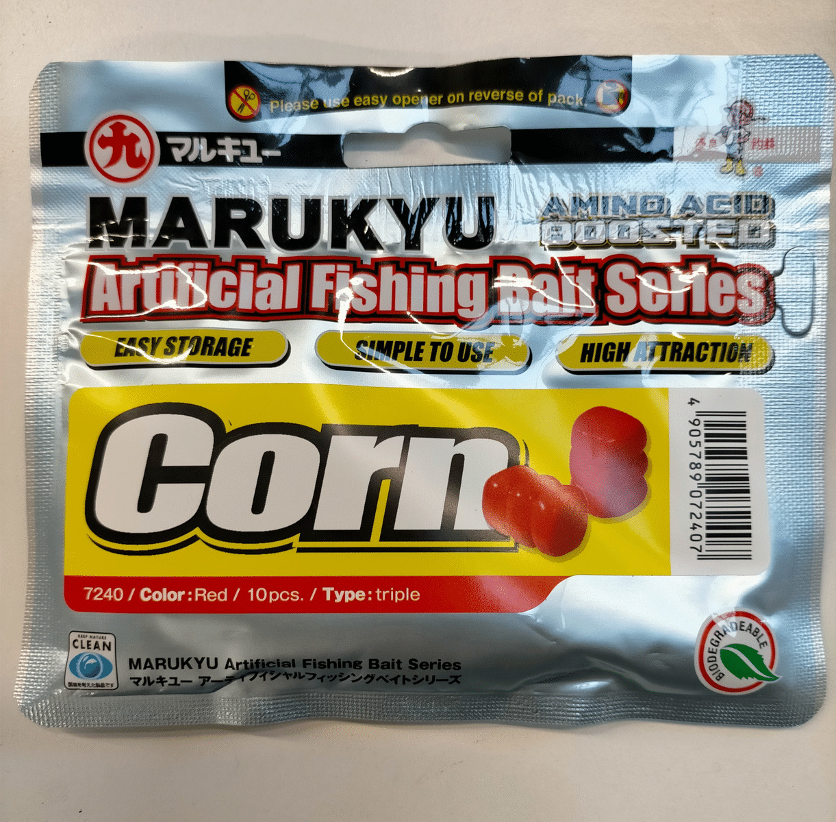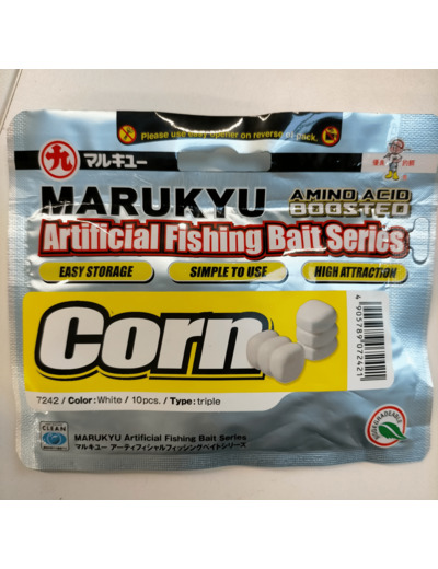 Beaucoup plus ré.sistant qu'un maï.s naturel, il peut ê.tre lancé. à. longue distance. Le Marukyu Corn .se monte en "cheveux" ou directement sur l'hamecon. Il est idé.al pour les pê.ches en batterie des plus grosses carpes, ou au feeder, method et grande canne (pour carpodrome).