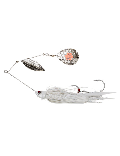 Armature en acier inoxydable, avec boucle fermé.e pour l&rsquo.emploi d&rsquo.agrafes. Lests additionnels à. ajouter à. l&rsquo.anneau plein sur la jupe. La palette tourne immé.diatement en touchant l&rsquo.eau, le rendant idé.al pour le free falling. Jupe en silicone et tinsel avec double queue en trailer. Hameç.on chance amovible.