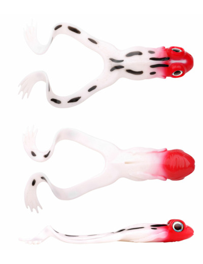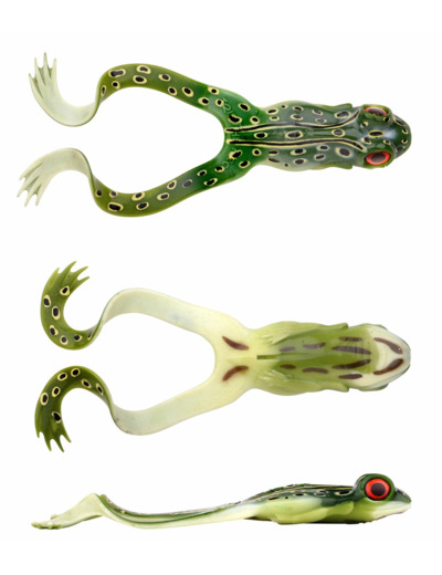 un leurre souple qui imite parfaitement une grenouille , montage avec des tetes plombé.s en hamecon 4/0 ou 6/0