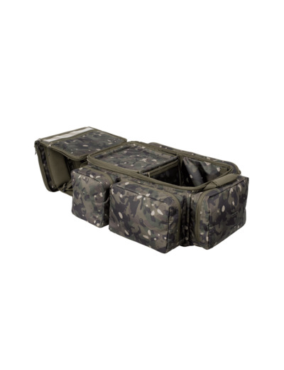 Ce sac à. dos de pê.che à. la carpe permet plusieurs configurations pour que son utilisateur puisse l'adapter à. ses propres pré.fé.rences de stockage. Il est parfaitement adapté. à. la pê.che itiné.rante ou aux sessions plus longues, et son design mince et profilé. permet un rangement facile sous un bedchair. Il offre un accè.s facile à. toutes les zones clé.s lorsqu'il est à. plat, ce qui le rend parfait pour la pê.che depuis une brouette et pour rester mobile. Nous avons ajusté. l'ouverture et dé.placé. les bretelles pour convertir le couvercle du sac à. dos en une table fonctionnelle entiè.rement autonome.