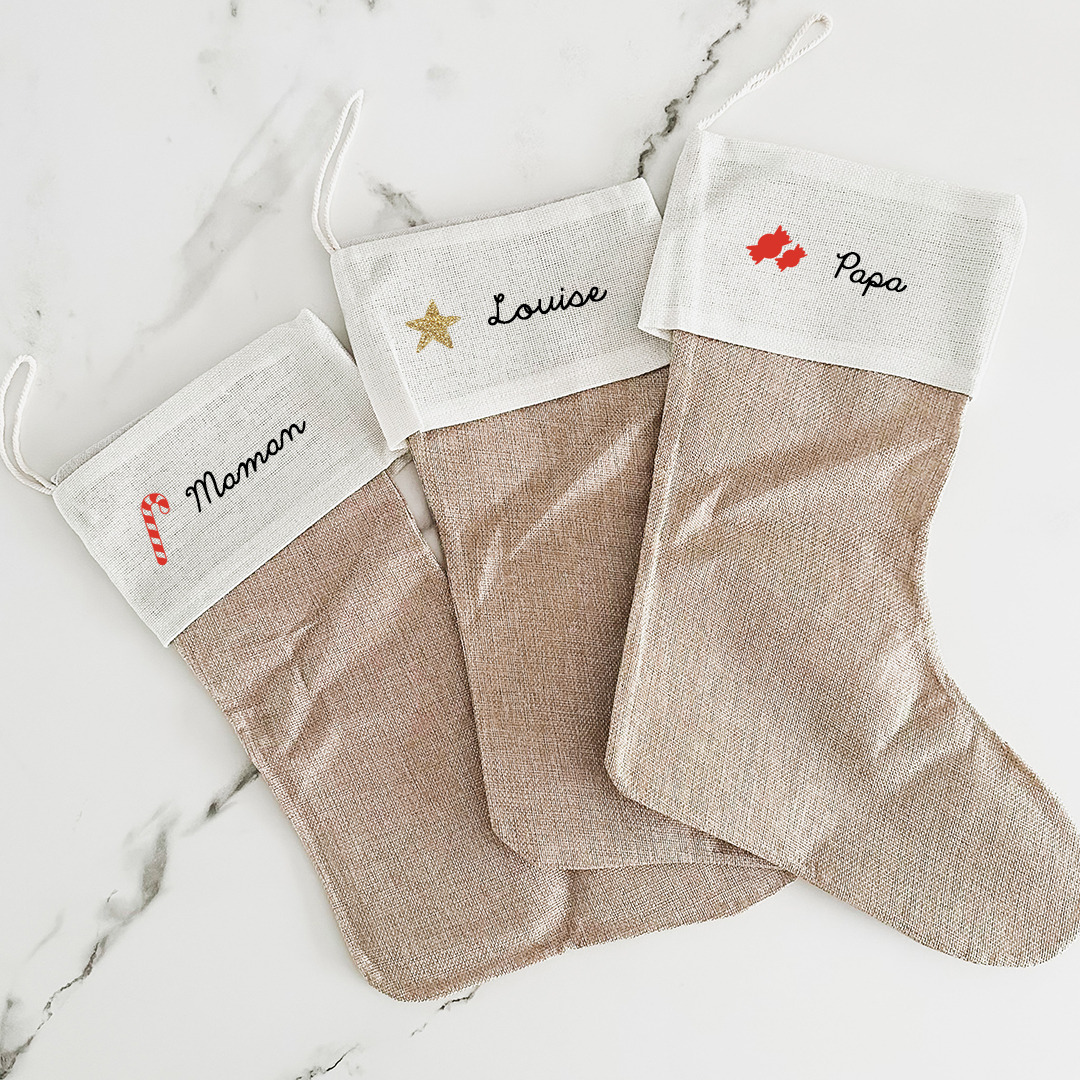 Inscrivez les prénoms de la famille, ou un mot doux sur la chaussette.