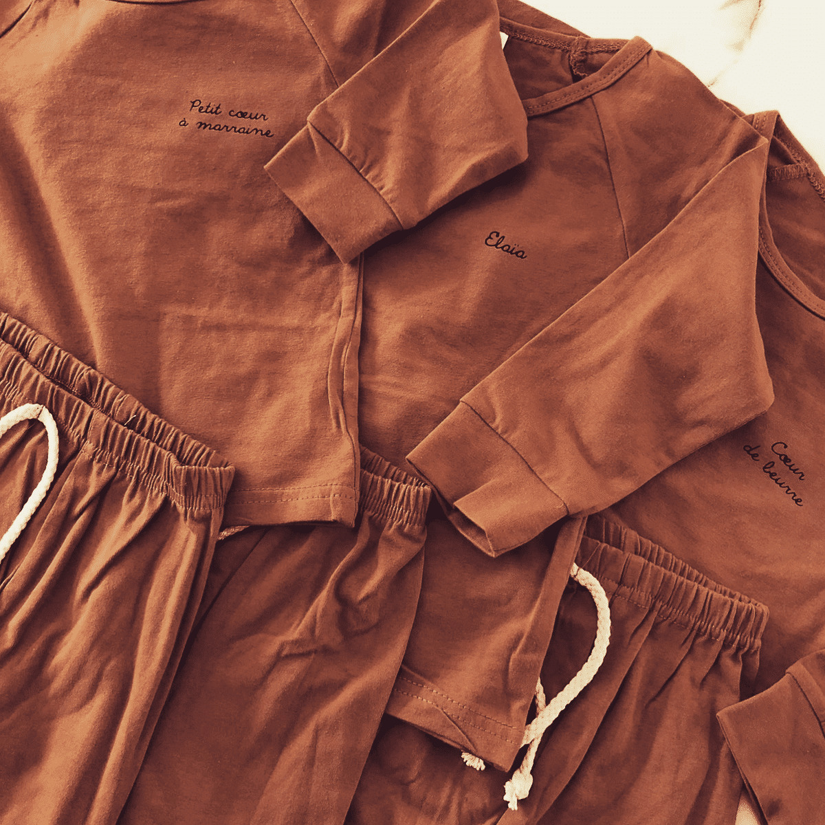 Découvrez notre sélection de vêtements et accessoires pour toute la famille, à personnaliser avec un prénom ou un mot doux.