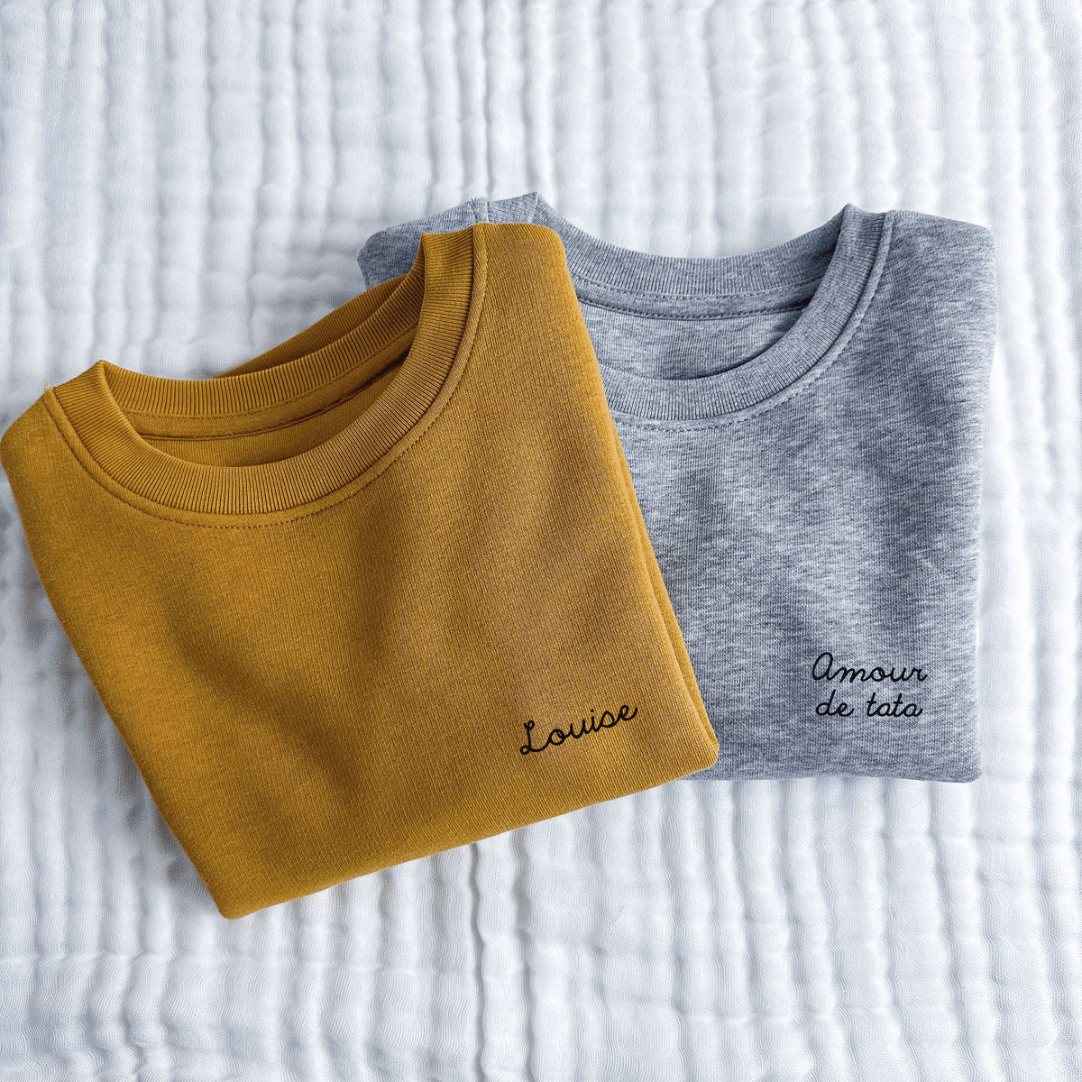 Découvrez notre sélection de vêtements et accessoires pour toute la famille, à personnaliser avec un prénom ou un mot doux.