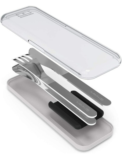 FRENCH DESIGN ET PRATIQUE : Grâce à son design unique, transporter des couverts nomades n’a jamais été aussi simple ! Il suffit de retirer le socle souple de maintien de la boite, de le déposer sous le couvercle supérieur du MB Original ou MB Square et de ranger chaque couvert à sa place !