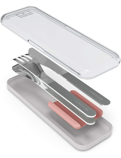 FRENCH DESIGN ET PRATIQUE : Grâce à son design unique, transporter des couverts nomades n’a jamais été aussi simple ! Il suffit de retirer le socle souple de maintien de la boite, de le déposer sous le couvercle supérieur du MB Original ou MB Square et de ranger chaque couvert à sa place !