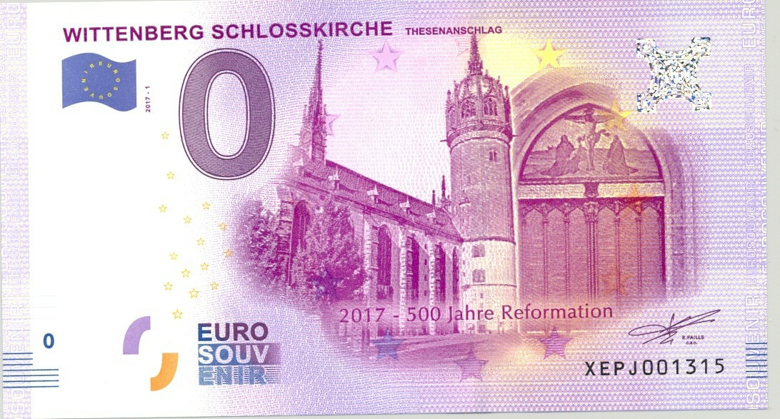 ALLEMAGNE WITTENBERG SCHLOSSKIRCHE BILLET SOUVENIR 0 EURO 2017-1 NEUF