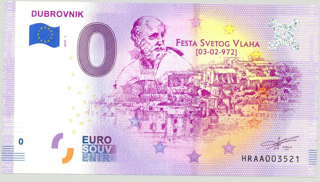 CROATIE 2019-1 DUBROVNIK BILLET SOUVENIR 0 EURO TOURISTIQUE NEUF
