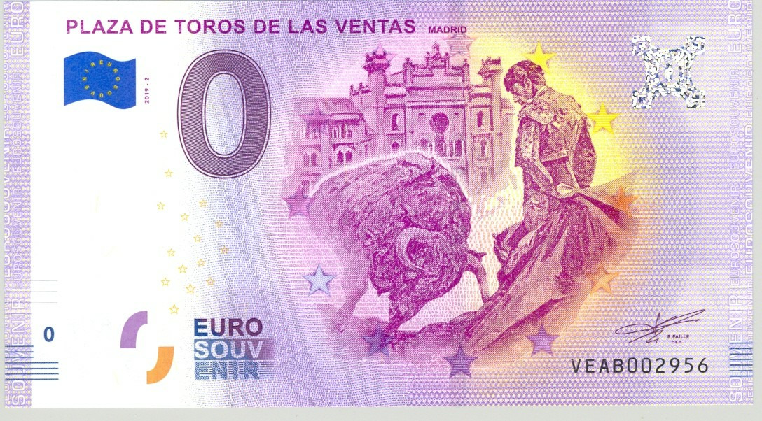 ESPAGNE 2019-2 PLAZA DE TOROS DE LAS VENTAS BILLET SOUVENIR 0 EURO TOURISTIQUE NEUF