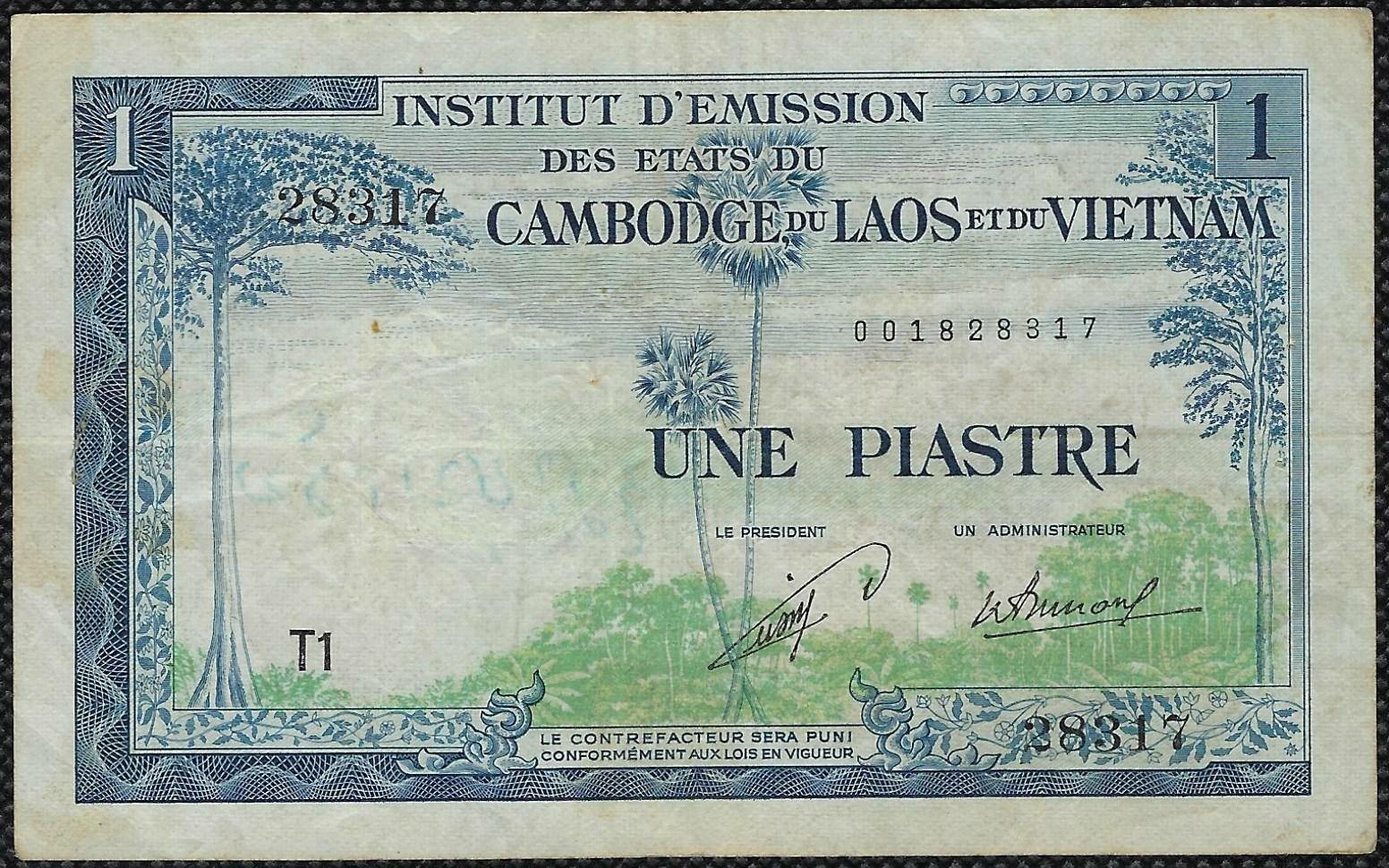INDOCHINE (Cambodge-Laos-Viet Nam) 1 PIASTRE
