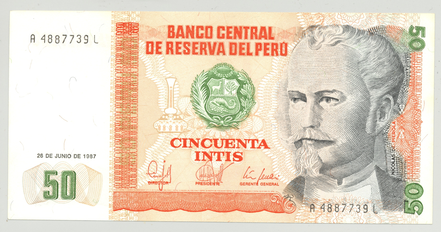 PEROU 50 INTIS 26-6-1987 SERIE A NEUF (W131b)